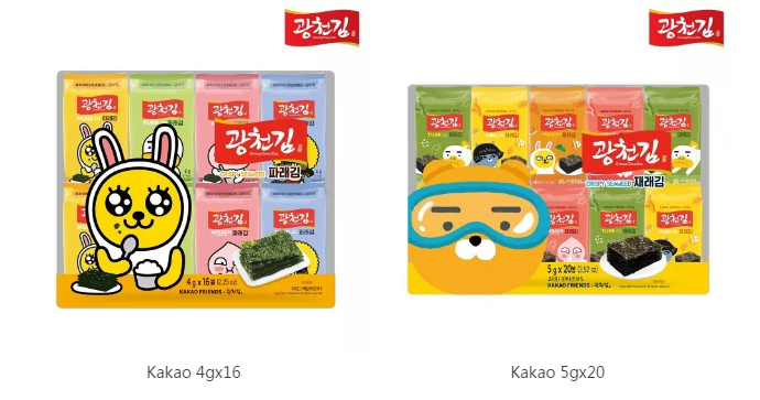 Kwangcheonkim Co. Ltd. follows the strict quality and hygienic management standards such as HACCP, ISO22000, and is committed to producing safe and healthy products. Among the 16 main products, six are printed with the KAKAO animation, which is the most popular cartoon in South Korea at present. The unique cute packaging attracts the attention of more people. In addition to nori products, there are also other special products, such as coconut chips, crispy seaweed biscuits, etc., all of which are very healthy and delicious.