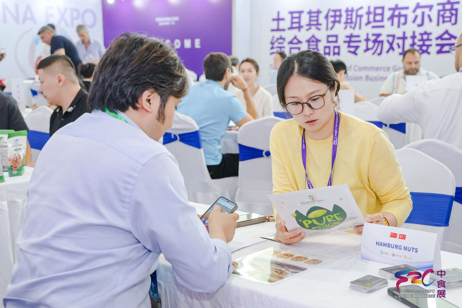 At the special matchmaking meeting of the Istanbul Chamber of Commerce in Turkey held at the 2025 Food2China Expo exhibition site, Turkey's rich product range covers a variety of dried fruits, nuts, biscuits, supermarket products, baby food, healthy snacks, olive oil, coffee, ketchup and other exhibits, which attracted the attention of many buyers. The audience stopped and actively communicated. The elite purchasing team of Guangzhou Chain Store & Franchise Association, as a VIP purchasing group, also came to the matchmaking site to select and purchase a series of high-quality products that meet market demand.