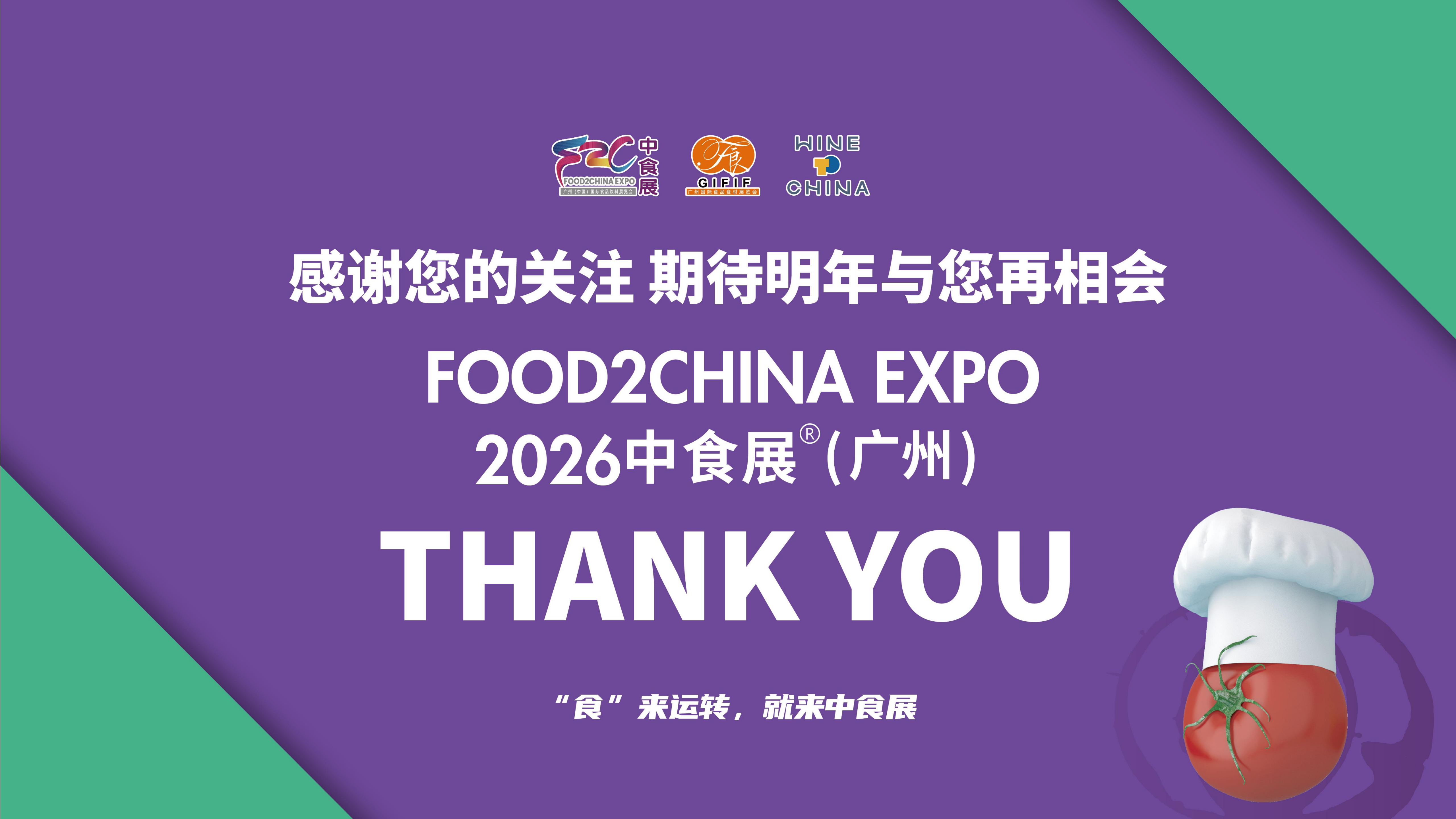 2026 Food2China Expo F2C中食展®(广州), Co-located with GIFIF and Wine to China Expo, will be held from September 10-12, 2026, at Area B, Canton Fair Complex in Guangzhou.