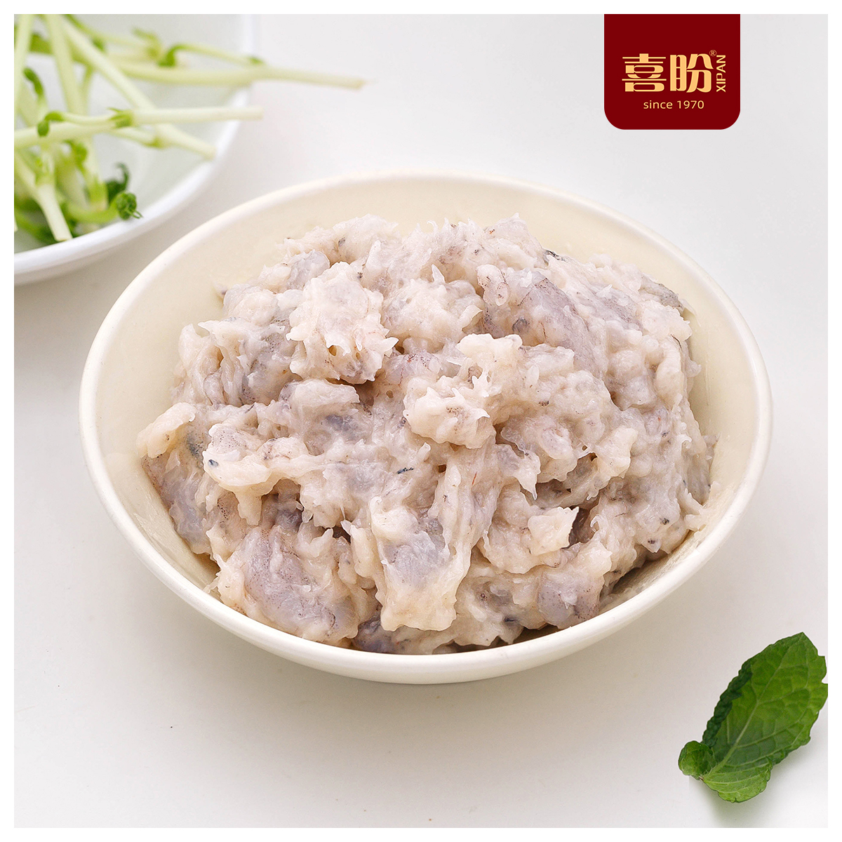 采用南美白对虾,把虾去壳,经过机器上千次的搅拌,使得虾肉更具黏性,经过低温速冻,让其保持原有的营养成分,加入简单的调味后,不仅有爽脆丝滑的口感,而且又虾肉鲜味,解冻后鲜美如初,特别适合火锅食用。