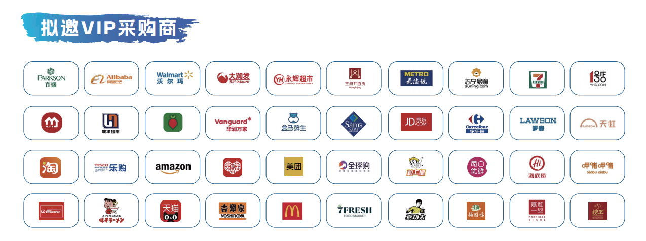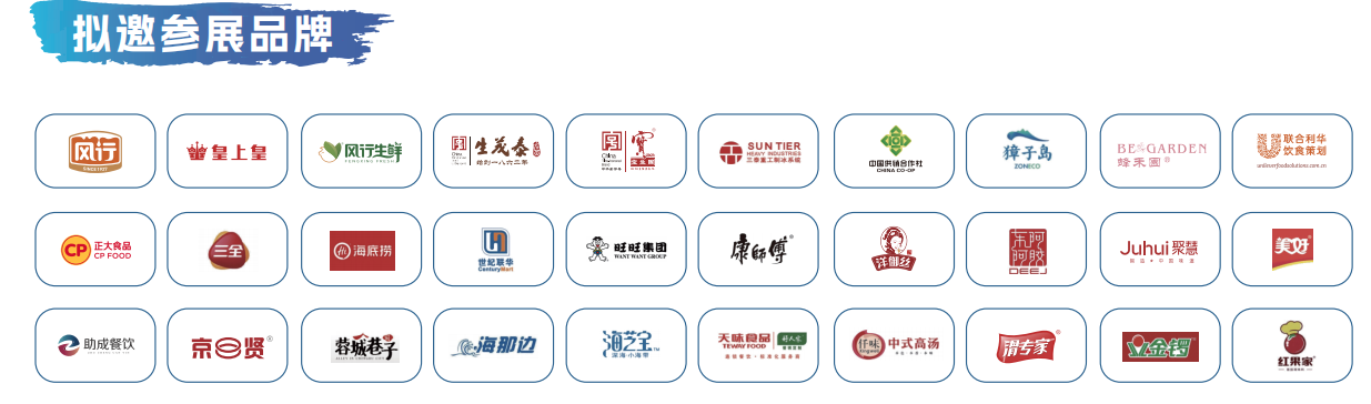 流通渠道:国内外食品和餐饮食材代理商、贸易商、经销商、批发商,酒店餐饮团餐配送商、新兴贸易渠道商,餐具厨具代理商、贸易商、经销商等;