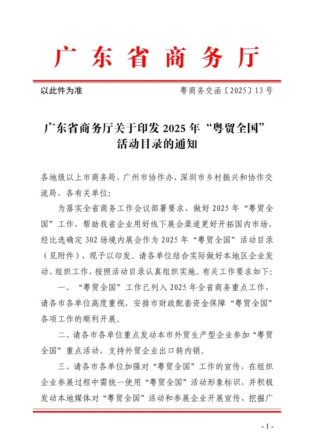2月7日,广东省商务厅官网发布了《广东省商务厅关于印发2025年“粤贸全国”活动目录的通知》。即将于2025年9月25-27日在广州广交会展馆B区举办的2025中食展(广州)暨广州国际食品食材展、Food2China Expo广州(中国)国际食品饮料展览会、Wine to China酒展(简称2025 F2C中食展®广州)项目被纳入2025年“粤贸全国”活动目录。