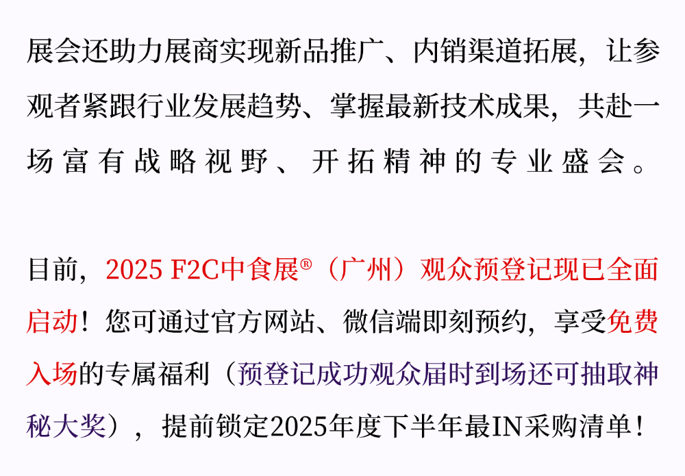 “食”来运转!2025F2C中食展®(广州)参观预登记全面开启!领票锁定年度最IN采购清单!