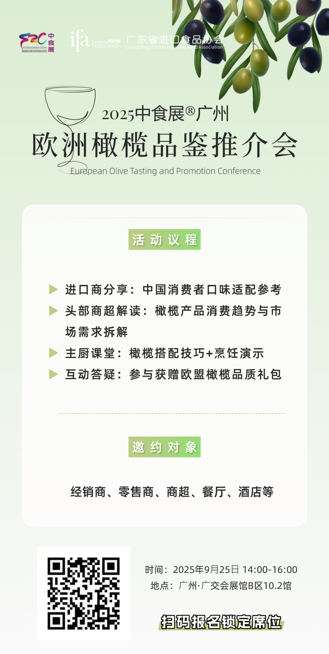 展会始终以提升“贸易实效”为核心,一方面提前锁定买家需求,搭建供需双方精准配对通道以优化对接效率;另一方面已吸引众多知名零售商采购团队提前预约洽谈时段,各方均期待在此发掘优质供应商。此外,展会还将同步举办进口食品专场对接会、云南专场对接会、云南省“绿色云品”推介会、欧洲橄榄推广项目,通过特色专场进一步强化供需精准匹配,助力贸易合作高效达成。
