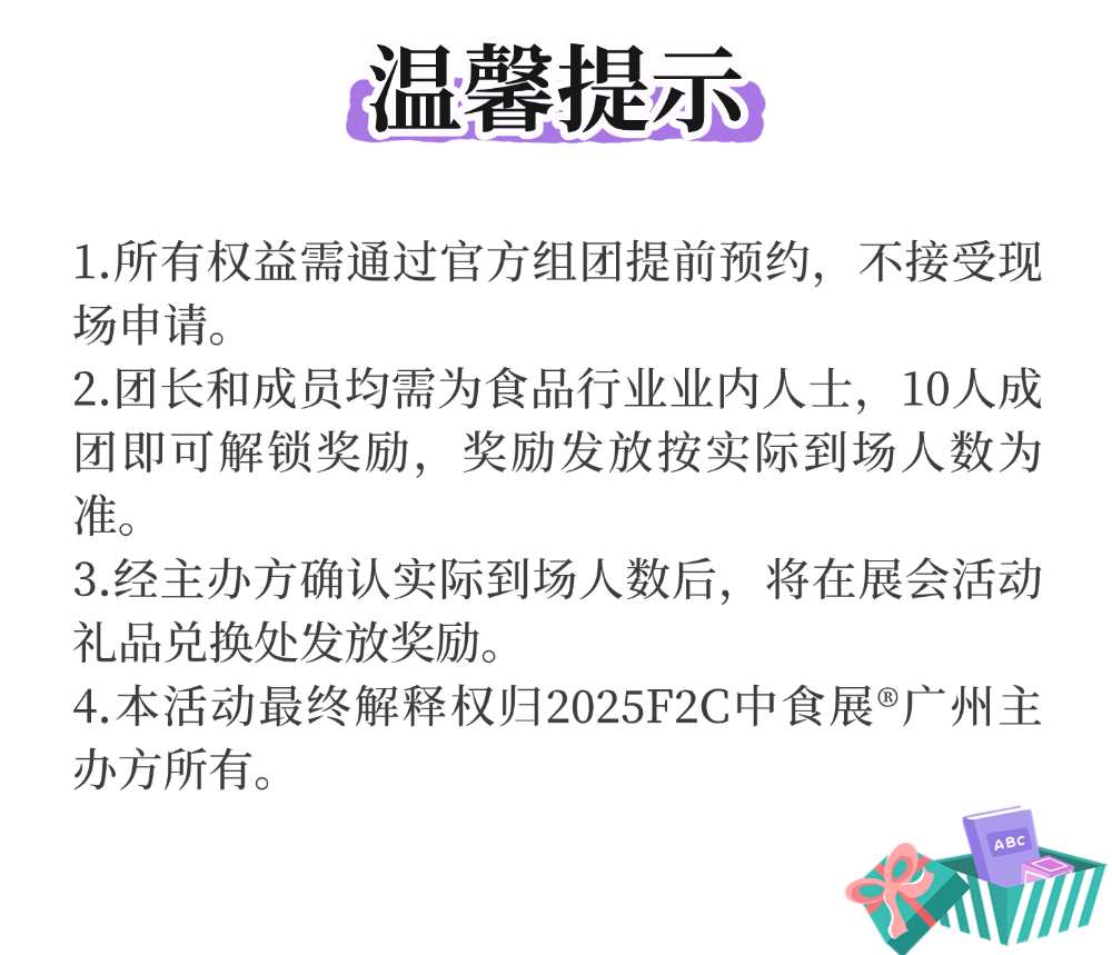 9月25-27日,与同事、合作伙伴相约一起参观2025中食展®广州可享团体超值赠礼!