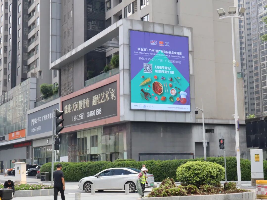 为实现“精准触达+广泛曝光”双重目标,组委会采用“1V1地推精准攻坚+户外电子屏场景覆盖”的线下组合模式:一方面以“精准、高效”为原则组建专业地推团队,通过前期市场调研与数据分析锁定食品经销商、连锁餐饮采购负责人、进口食品贸易商、零售终端采购等核心目标人群,定制针对性推广资料,以广州为核心辐射周边城市,渗透食品产业园区、农产品批发市场、进口食品集散中心等核心点位开1V1定向邀请,深入核心采购场景收集真实需求、提升预登记质量。