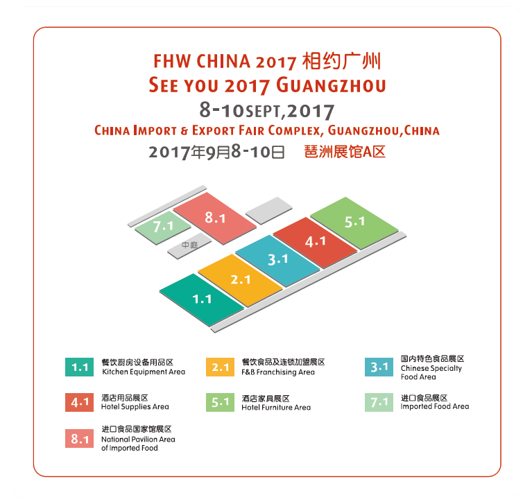 FHW CHINA 2017第六届广州国际特色食品饮料展览会、第十五届广州国际酒店用品展览会、广东国际旅游产业博览会,三展同期举办,吸引高质量买家资源。