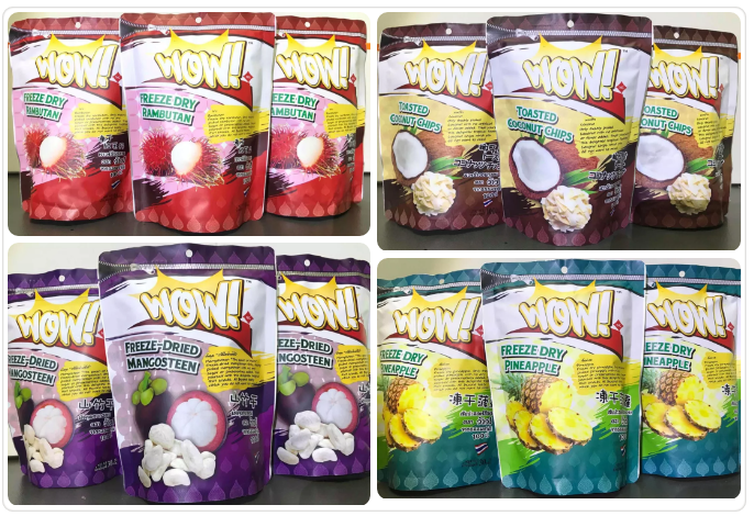 公司主打产品是泰国热带果干,如榴莲干、冻干山竹干, 冻干芒果干、冻干菠萝蜜干、冻干红毛丹干、辣芒果干、樱桃番茄干等等,为纯天然营养丰富食品,无任何添加剂,可以直接食用。现在产品主要销往上海、杭州等地区,深受广大消费者的欢迎。