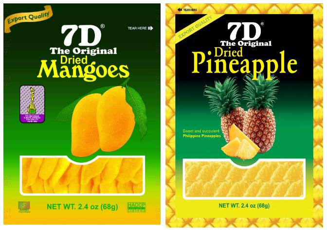 7D芒果干是一种美味的小吃,由菲律宾的成熟吕宋芒制成,饱含丰富的芒果风味和令人沉醉的香气。芒果是用最优质的蔗糖自然加工而成,具有诱人的酸甜口味,这已成为7D独特品牌的标志。7D芒果干可以达到你想要的嚼劲,每咬一口都可以品尝到芒果的味道。7D还提供另一种即食小吃菠萝干,由新鲜菠萝精心制成,用最好的生蔗糖加工以保持其自然风味。
