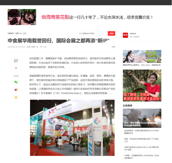 本次展会是广州今年重点打造的三大品牌展会之一,在规模和体量上全新升级,将全方位提升展商的参展效益和品牌推广效率。近日,来自新华报业网、新浪网、搜狐网、腾讯网、千龙网等多家主流媒体对中食展®(广州)品牌展进行全面深度报道,在线上开启一波刷屏趋势,参展人气进一步提升!