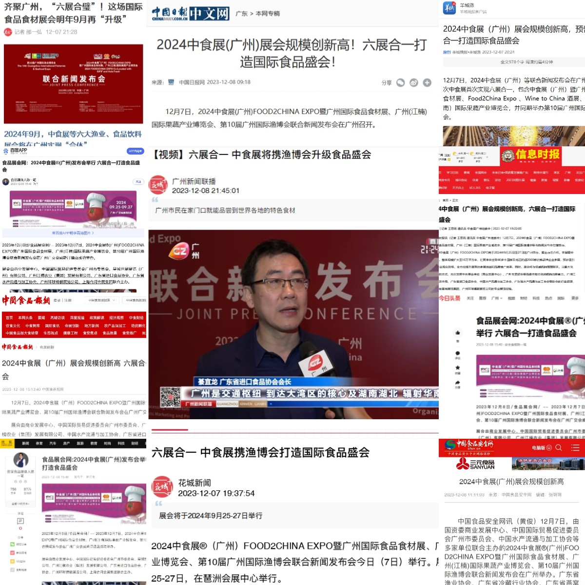 2023年12月7日,2024中食展®(广州)FOOD2CHINA EXPO暨广州国际食品食材展、广州(江楠)国际果蔬产业博览会、第10届广州国际渔博会联合新闻发布会在广州广交会威斯汀酒店成功举办。