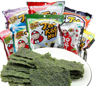 这是一款由海苔制成的健康零食,可以给食用者提供丰富的植物性蛋白质、纤维质、铁与钙质,使用了棕榈油制作,口感就像油炸食品一样松脆,却不会让人觉得油腻,厚厚的海苔片,味道浓郁,给人一个丰富的味觉享受,远胜传统小片单薄海苔的咀嚼口感。