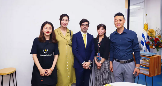 乌拉圭驻广州总领事Martin ALVEZ(中)与Food2China、IFA代表合影