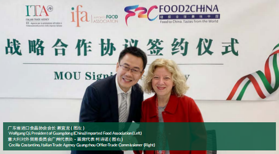 近日,意大利对外贸易委员会(ITA)与广东省进口食品协会、FOOD2CHINA 达成战略合作并签署战略合作协议。意大利食品国家馆将进驻 FOOD2CHINA.COM,双方将共同携手开拓中国市场。据悉,首批将会有 60 家意大利食品企业进驻,产品品类覆盖休闲食品、酒水饮料等多个方面。意大利食品是全球公认的色、香、味、质俱全的典范,这次合作有效结合 ITA 丰富的食品资源和 FOOD2CHINA、广东省 进口食品协会强大的中国食品渠道优势,结合线上线下全新的商贸对接模式,更好地把意大利特色食品推向中国消费者手上,为中国的餐桌“升级”。