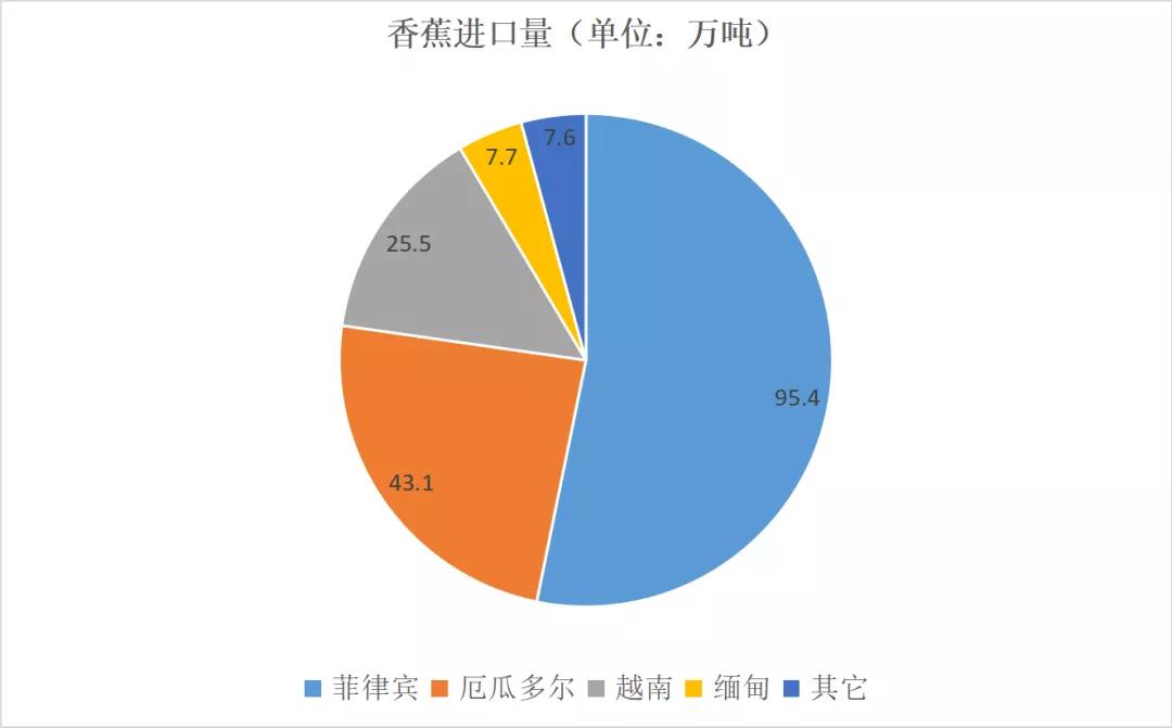 而按品类划分,进口香蕉方面,菲律宾(95.4万吨)一枝独秀,坐拥进口香蕉的半壁江山,厄瓜多尔(43.1万吨)和越南(25.5万吨)分别位居第二和第三。
