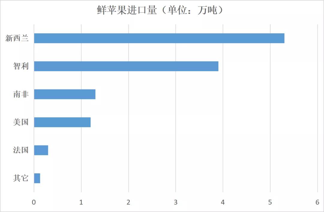 苹果方面,虽然新西兰苹果进口量位居第一,达5.3万吨,但智利苹果(3.9万吨)正在后来居上,而南非苹果和美国苹果则几乎齐头并进。